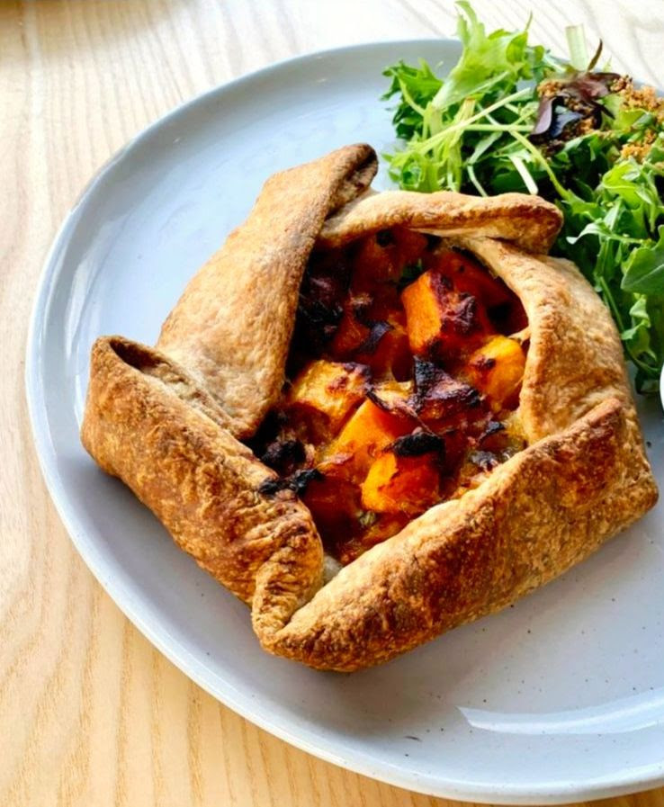 Hopefuly everyone had a great (and delicoius) Thanksgiving! We have a tasty menu to welcome you back! Get excited for: wild-caught Bering Bounty salmon in a crisp, everything-seasoning crust and served with a creamy, tangy caper sauce, couscous and roasted veggies; a squash and fontina galette from Tart enveloped in their signature flaky and buttery pastry crust with greens and a mustard vinaigrette; and a hearty, satisfying meal of classic beef barley soup!