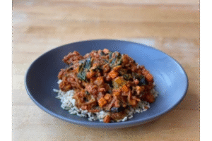 (VG) South African Sweet Potato Peanut Curry with Brown Rice