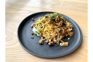 (V) Sweet Potato Tetrazzini with Mushrooms, Peas and Greens