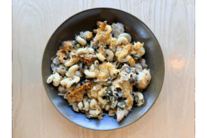 Chicken Tetrazzini with Mushrooms, Peas and Greens
