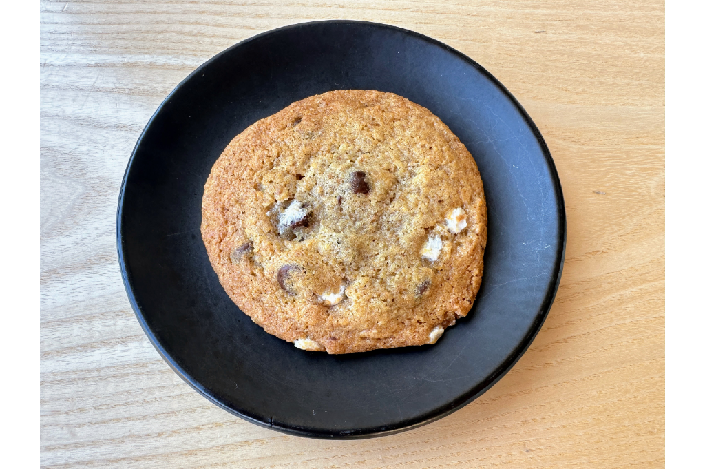 Ingredients: Butter, milk chocolate chips, AP flour, graham cracker crumbs, sugar, brown sugar, egg, maple syrup, vanilla, salt, baking soda, mini marshmallows (gelatin, sugar, corn syrup, modified cornstarch, sodium hexmetaphosphate, natural and artificial flavors, fd&c blue #1)