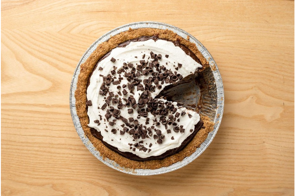 Enjoy a dark chocolate cream pie, topped with vanilla chantilly cream and chocolate curls on a gluten-free oat cookie crust from the P&P Bakeshop. Each pie is 9″, serves 6-8 people and comes frozen. Thaw pie in refrigerator overnight and enjoy!